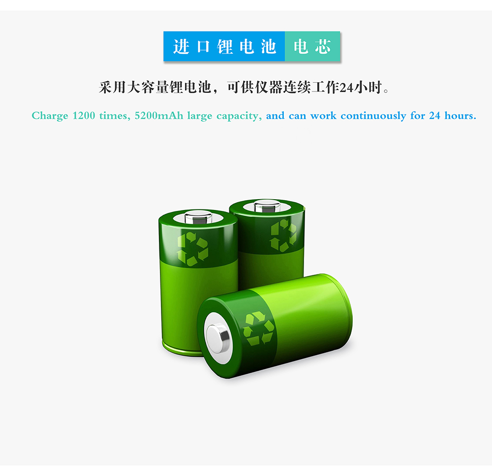 10.工作電源:內(nèi)置電池,交直流兩用;鋰電池電芯,可連續(xù)測量12小時;