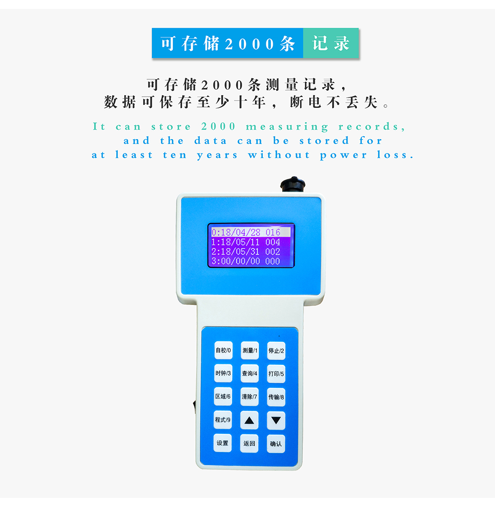 7.數(shù)據(jù)存儲容量:存儲區(qū)域10個,可存儲1000條測量記錄,數(shù)據(jù)可保存至少十年,斷電不丟失;